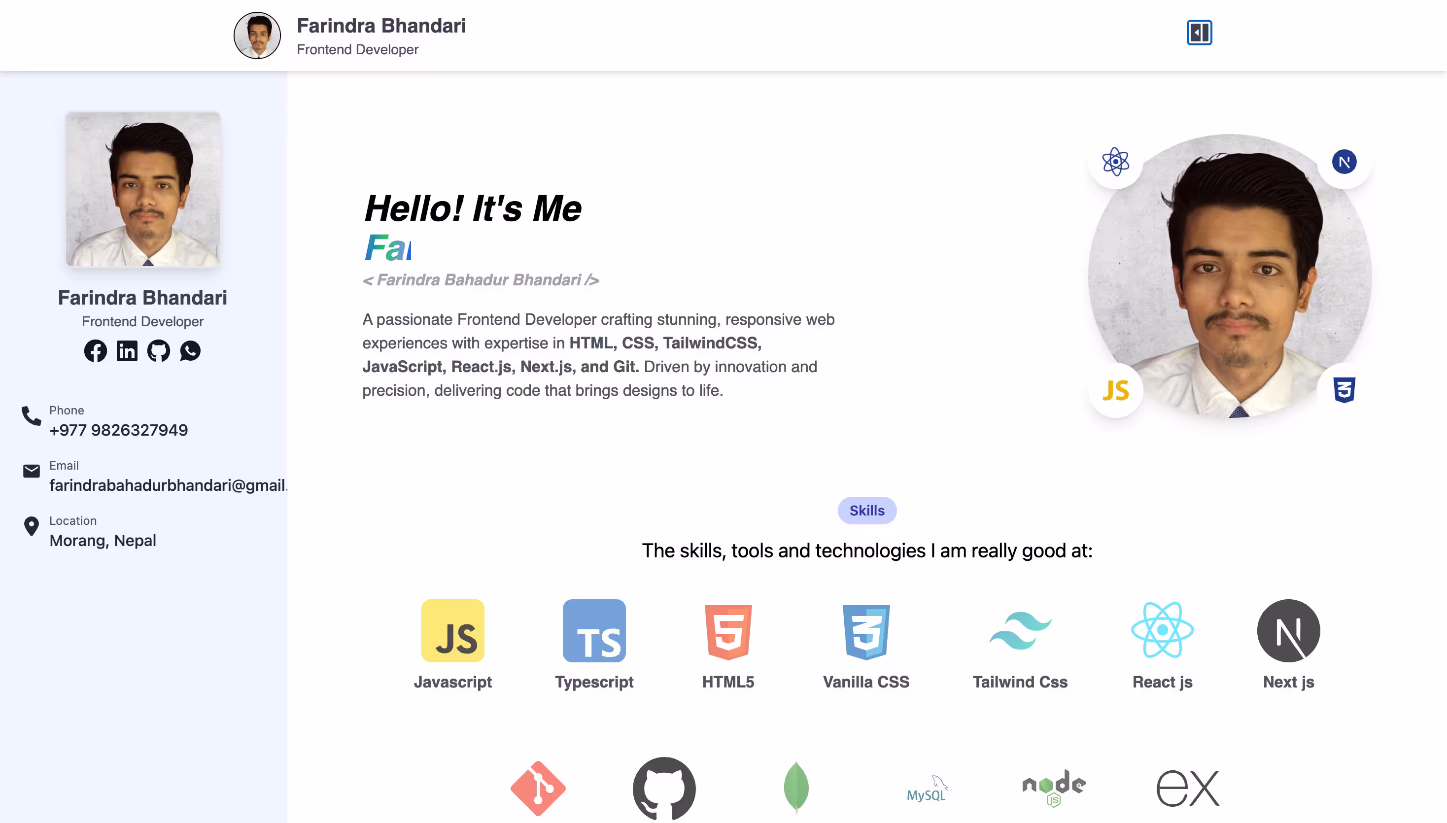 A passionate Frontend Developer crafting stunning, responsive web experiences with expertise in HTML, CSS, TailwindCSS, JavaScript, React.js, Next.js, and Git. Driven by innovation and precision, delivering code that brings designs to life.